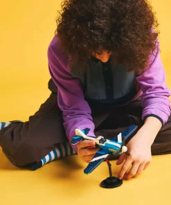 Kids can choose to build 3 different awesome vehicles: an airplane toy with a rotating propeller and moving wheels; a jet plane toy with moving wheels; and a helicopter model with a spinning rotor blade. Each model can be displayed on a brick-built stand and the set is an impressive gift for kids who enjoy playing out imaginative action-packed stories.