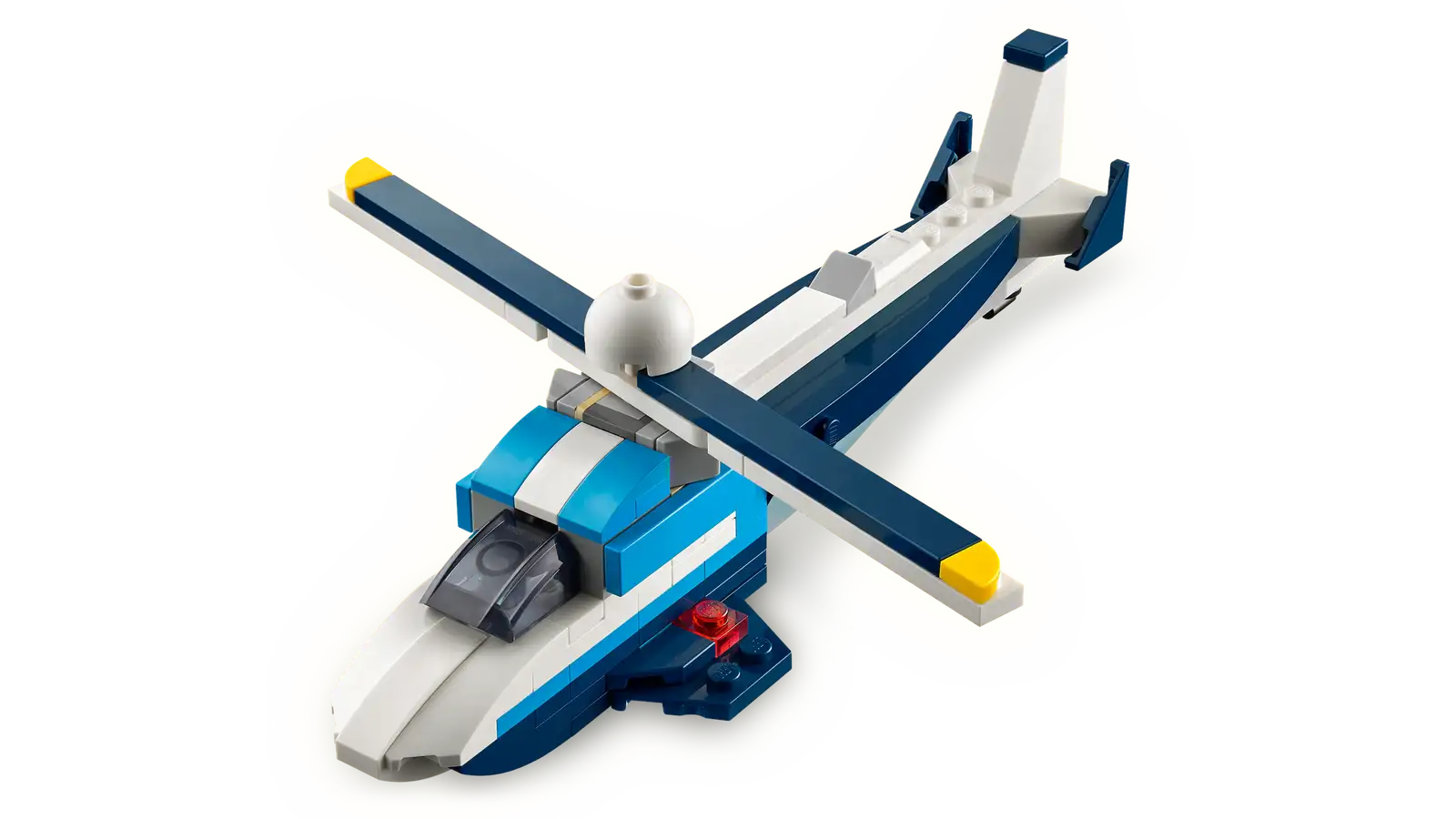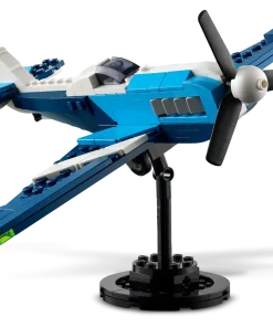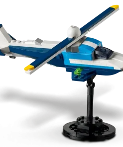Superfast adventures in the sky await boys and girls aged 7 plus with the LEGO® Creator 3in1 Aircraft: Race Plane (31160) toy playset. The plane model has a rotating propeller at the front, moving wheels so it can travel on the ground, and a brick-built stand for display.