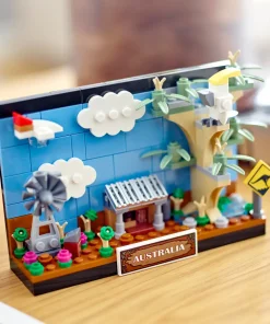 Bring the unique sights of the Australian outback to life with this impressive 3D buildable Australia Postcard (40651). This brilliant gift features some of the outback’s most famous sights, including a shed, windmill, eucalyptus tree, desert flowers and a cockatoo. LEGO® fans can also add a decorative plaque with ‘Australia’ written on it, and a kangaroo road sign.