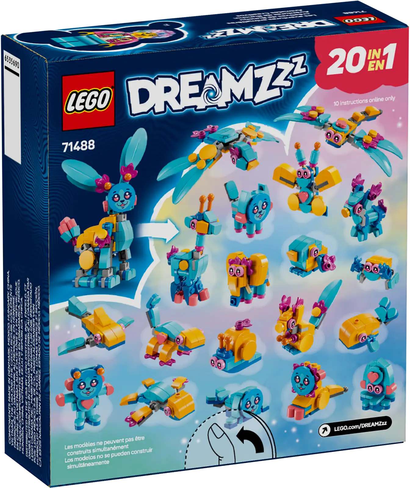 Creativity will soar as kids create a cute Bunchu rabbit figure with posable legs, arms, feet, tail and ears before rebuilding it into 19 exciting animal toys. Building options include a lion, turtle, deer, butterfly, dragonfly and more! Brought to life by an Izzie minifigure, who wears a new outfit and comes with a plushie toy accessory, the fantasy animal playset encourages creative role play as kids dream up new adventures for the LEGO DREAMZzz hero and her bunny sidekick.
