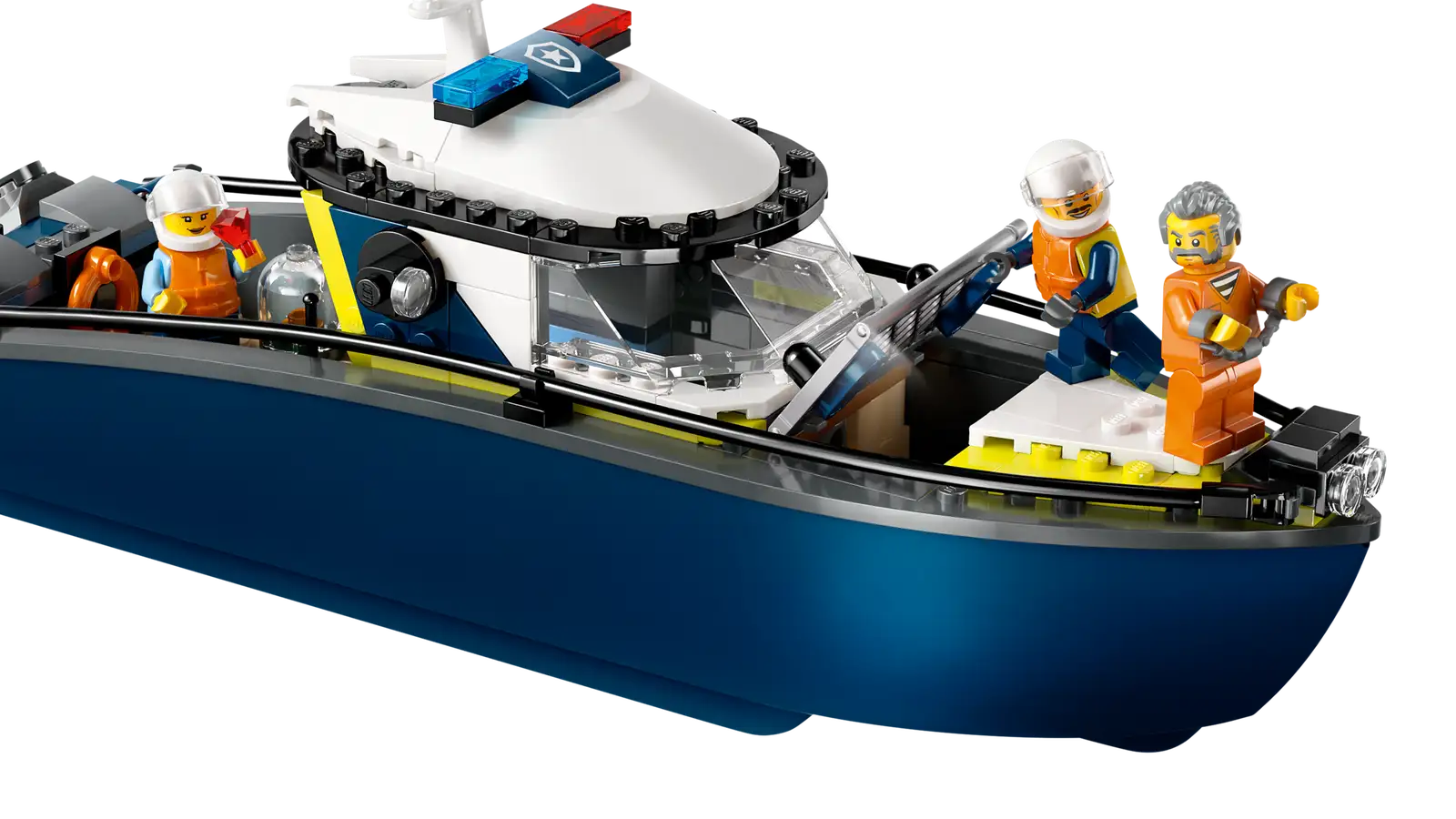 - Police boat chase playset for everyday heroes – Kids can dive into an ocean of action-packed crook-catching adventures with the LEGO® City Police Boat Chase set for ages 6 and up