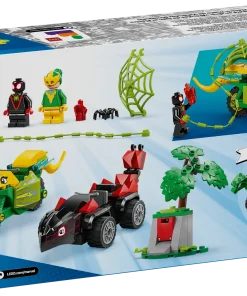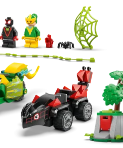 The set recreates action from the ’Dino-Webs’ season of the Spidey And His Amazing Friends TV show. It includes 2 Super Hero minifigures and 2 push-along dino-vehicles: Miles “Spin” Morales in a stegosaurus car and Electro in a dilophosaurus motorcycle. A large web element, a crystal hidden inside a rock, plus landscaping accessories inspire kids’ creative role play. Inside the box, each bag contains bricks and a large Starter Brick for a quick-to-build model and character, so play gets started quickly. Intuitive instructions are provided in the form of a colorful picture-story guide.