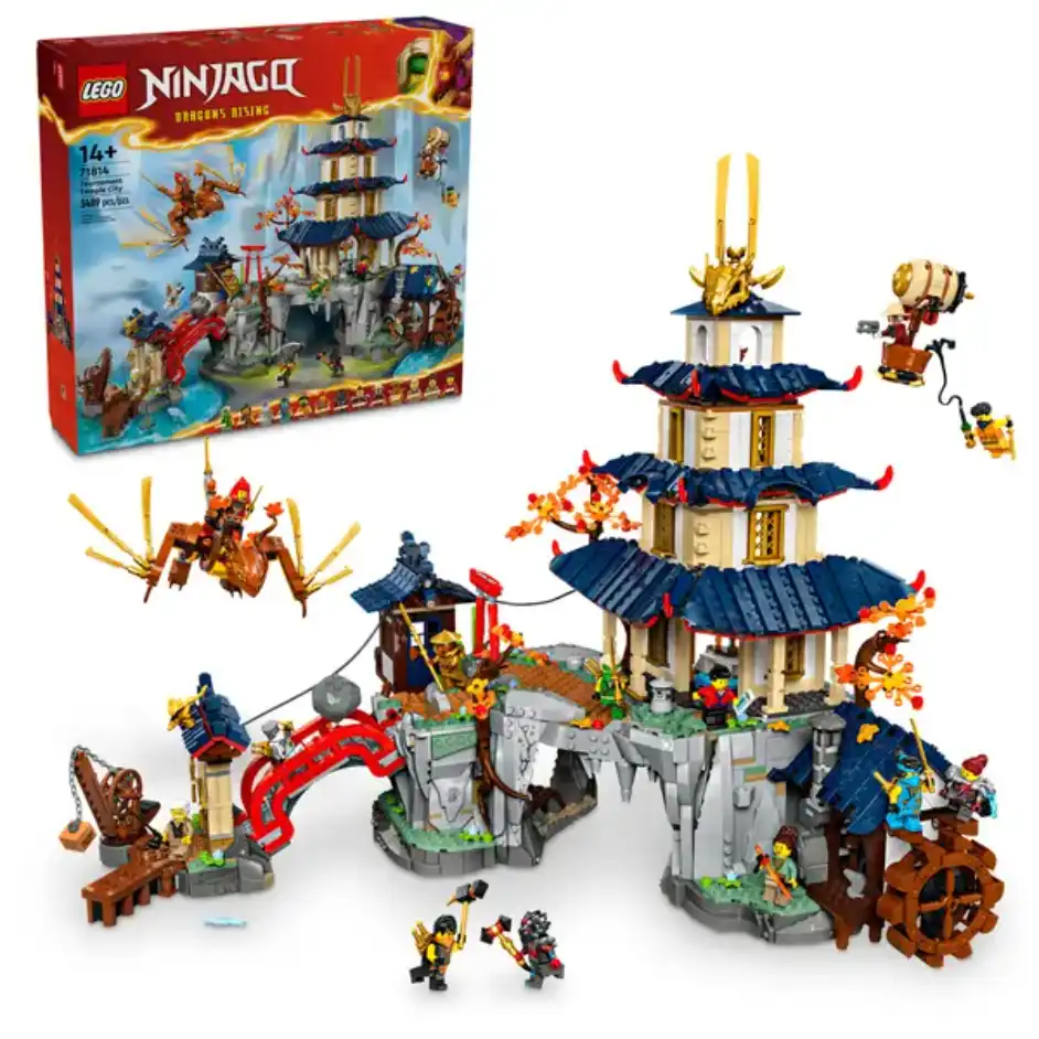 - NINJAGO® temple adventure toy for kids – Boys and girls aged 14+ can build, play with and proudly display this Tournament Temple City building set from season 2 of the NINJAGO Dragons Rising TV show